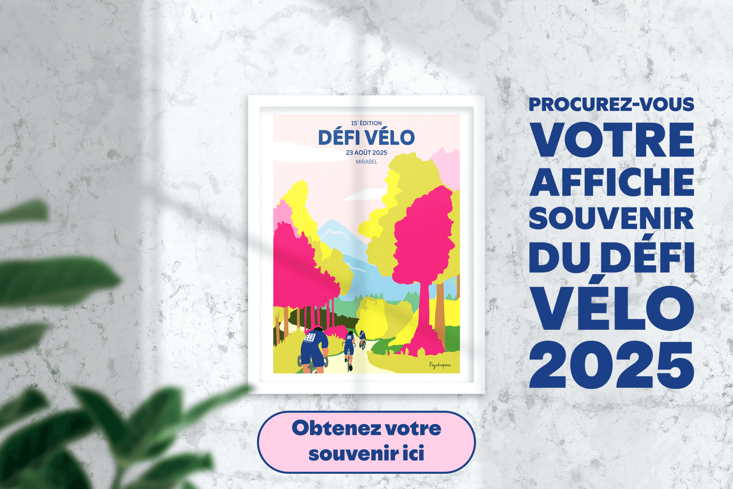 Nous sommes ravis de vous présenter l’affiche de cette 15e édition, créée par Psychopine, une artiste non seulement talentueuse, mais également profondément engagée dans la lutte contre la maladie de Parkinson. Ayant elle-même reçu un diagnostic de Parkinson précoce, son art prend une dimension particulière. Avec ses couleurs vibrantes et son style unique, cette œuvre incarne parfaitement l’esprit du Défi Vélo : un engagement solidaire, une cause qui nous rassemble, et une aventure collective.